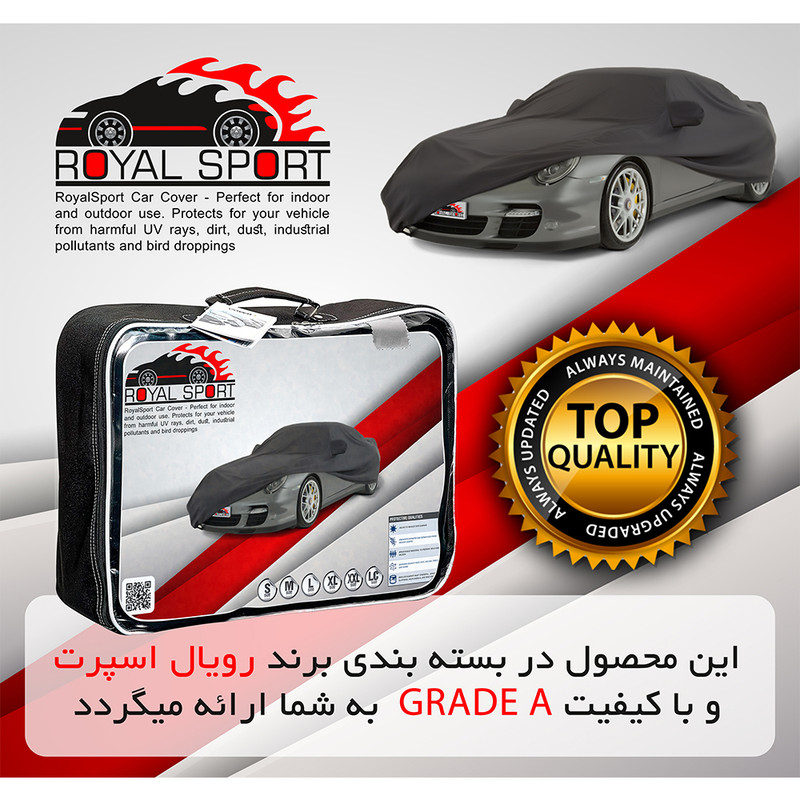 کاور خودرو، یا در زبان عامیانه ما چادر ماشین، مناسب برای خودروهایی است که از پارکینگ مسقف خود خارج می شوند!! به عبارتی هر کسی که از خودروی خود استفاده کند، می تواند برای در امان نگهداشتن خودروی خود از تابش مستقیم نور خورشید، گرد و خاک، باران و لکه های کثیفی بعد از آن، پرندگان یا حتی بازی کودکان از چادر ماشین استفاده نماید. بدنه ی خودرو همواره در معرض آفتاب، گرد وخاک، باران و آلودگی های محیطی است. یکی از بهترین و ضروری ترین راه های حفاظت از بدنه ی ماشین تهیه ی یک چادر ضدآب خودرو است. در واقع یک چادر ضدآب خودرو برای آنهایی که نگهداری و حفظ ظاهر خودرو برایشان اهمیت دارد، ضروری است. چادر ضدآب خودرو یک راه ساده و موثر برای حفاظت بدنه ی خودرو در برابر خط و خش و تغییر رنگ است. چادر ضد آب خودرو از یک لایه ی مخصوص بهره می برد که مقاوت آن در برابر نفوذ آب را تا حد زیادی بالا برده است. لایه ی درونی چادر ضدآب خودرو از جنس نرم ساخته شده است تا از بروز آسیب های سطحی توسط چادر جلوگیری شود. علاوه بر این یکی دیگر از مزایای چادر ماشین ضد آب این است که میتواند ما را از هزینه هایی که برای کارواش پرداخت میکنیم تا همیشه اتومبیل تمیزی داشته باشیم این چادر خودرو به سفارش برند رویال اسپرت در خط تولید شرکت پاسیکو تولید شده، در رده بندی کیفیت GRADE A و به همراه یک پرده پارک ضد اشعه آفتابگیر که در بسته بندی قرار گرفته ارائه می شود.