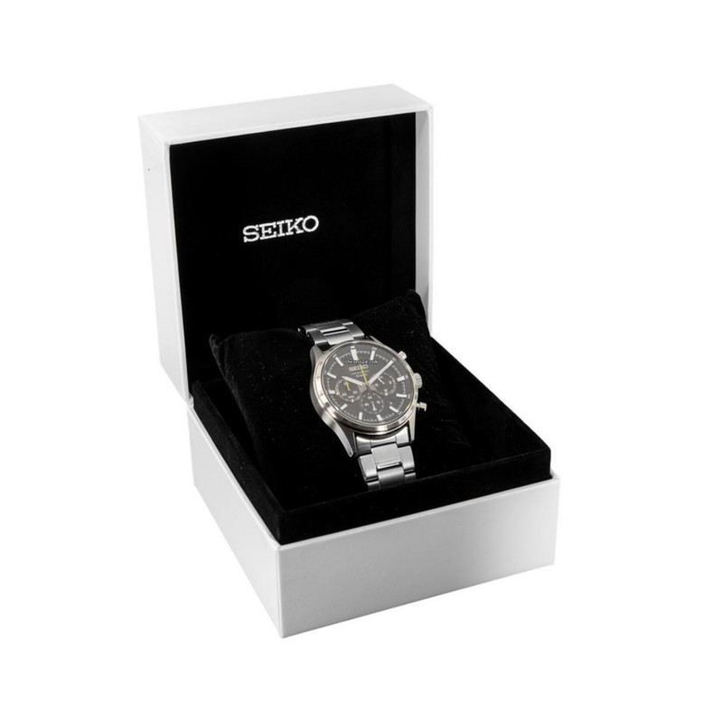 SSB413P1 یکی از جدیدترین مدلهای کمپانی سیکو است ، کیفیت ساخت بسیار بالایی دارد و طراحی صفحه در نگاه اول بسیار چشمگیر است ، جنس قاب و بند از استیل ضدحساسیت تولید شده است ، شیشه از یاقوت معدنی ضدخش تولید شده است ،این مدل در برابر آب مقاومت تحمل تا فشار 10BAR را دارد