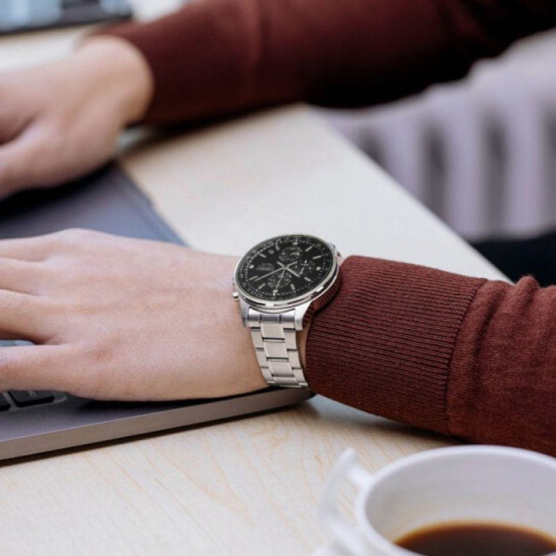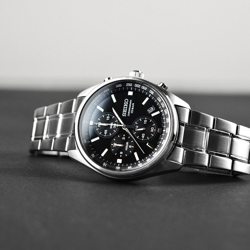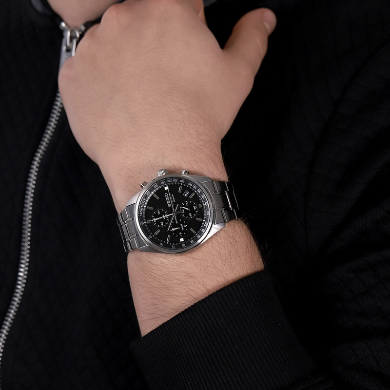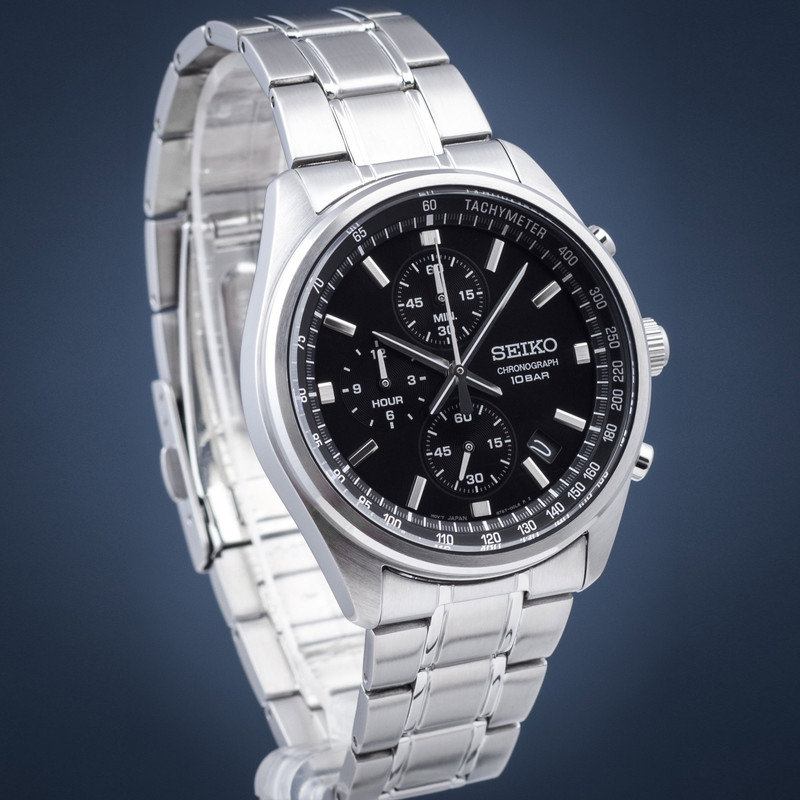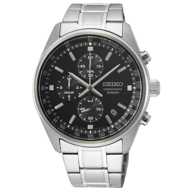 این طرح از برند ساعت سیکو با طراحی و رنگ خاص خود هم برای تیپهای رسمی و هم برای تیپهای اسپرت مناسب میباشد. بند و بدنه ی این ساعت سیکو از جنس استیل است که از ترکیب رنگ های نقره ای و مشکی در آن استفاده شده. از ویژگیهای منحصر به فرد این ساعت میتوان به طراحی بسیار شیک و اسپرت ساعت در عین مجلسی بودنش اشاره کرد. این ساعت سیکو چند موتوره یا کرنوگراف بوده و عقربه های کوچک آن کرنومتر هستند و همچنین دارای نمایشگر روزهای ماه نیز هست. اعداد دور بدنه ی ساعت نیز تاچیمتر میباشد که سرعت متوسط و شتاب را نمایش میدهد.