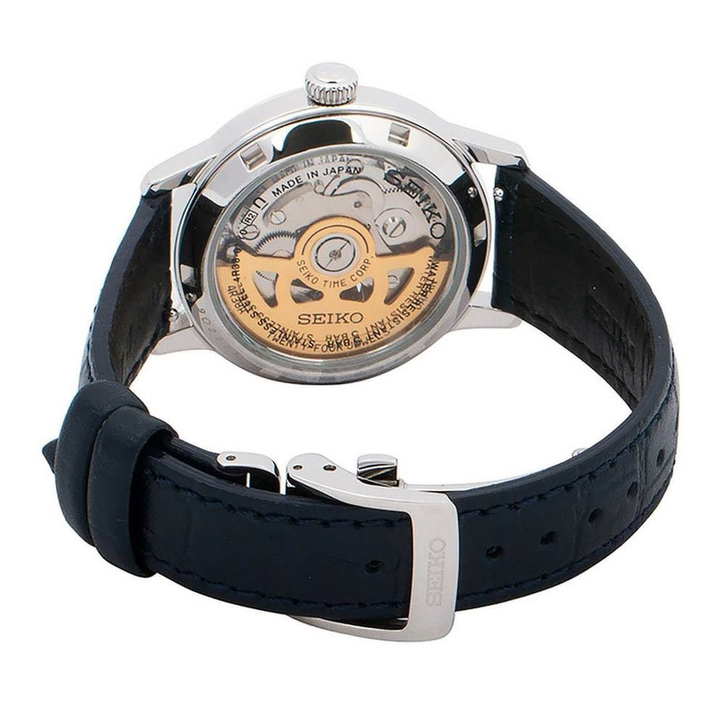 این طرح از برند ساعت سیکو با طراحی و رنگ خاص خود برای تیپهای نسبتا اسپرت بسیار مناسب میباشد. بند چرمی و بدنه ی این ساعت سیکو از جنس استیل است که از رنگ های سرمه ای و نقره ای در آن استفاده شده است. از ویژگی های منحصر به فرد این ساعت میتوان به طراحی بسیار شیک و اسپرت صفحه ی این ساعت در عین مجلسی بودنش اشاره کرد. این ساعت سیکو اتوماتیک بوده و نیازی به تعویض باطری ندارد. همچنین این ساعت دارای ست زنانه میباشد.