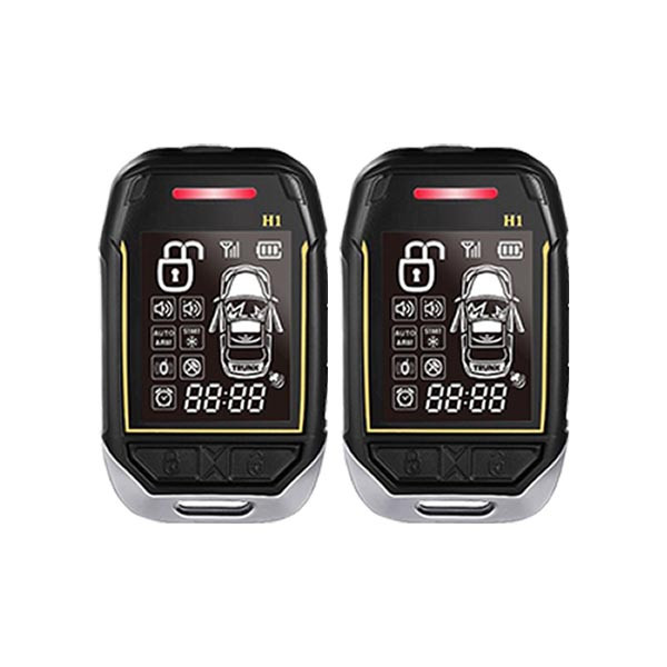 | اقلام همراه | بست کمر بندی, LED, راهنمای سیم کشی و نصب و قابلیت ها, شاسی کاپوت, سیم بندی کامل, آژیر, برد اصلی, شاسی ریست, شوک سنسور, رله قطع برق, 2 عدد ریموت تصویری, آنتن مجزا, کابل شارژ اندرویدی |