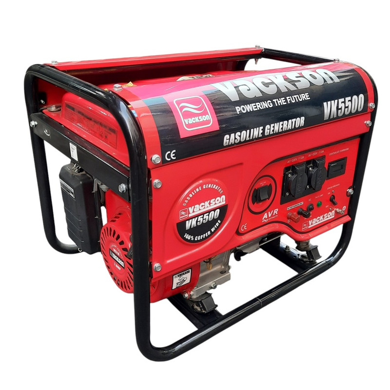موتوربرق واکسون 3500 وات مدل VK5500 یکی از موتور برق های با کیفیت است که شرکت «واکسون» تولید میکند. قدرت موتور 7 اسب که توانایی تولید 3500 وات را دارد. استفاده از سیم پیچ مس 100% و مجهز به تکنولوژی (AVR) میباشد.این ژنراتور برق تحتعنوان مدل «VACKSON VK5500» عرضه شده است. این موتور برق انرژی موردنیاز خود را از طریق احتراق بنزین تامین میکند. مخزن سوخت بنزین این موتور برق حجمی برابر با 15 لیتر دارد. موتوری که از این سوخت انرژی الکتریکی تولید میکند، از نوع چهارزمانه است و قدرتی معادل 7 اسب بخار دارد. ظرفیت این موتور 210 سیسی است. این موتور تکسیلندری به کمک جریان هوا خنک میشود و صدای 96 دسیبلی تولید میکند. با کمک موتوربرق واکسون3500 وات مدل VK5500 میتوانید برق AC و DC موردنیاز دستگاههای برقی خود را تامین کنید. سیم پیچی موتور برق های واکسون 100% از مس میباشد . توان این ژنراتور 3500 وات است و از طریق دو پریز درپوشدار برق AC را در اختیار کاربر قرار میدهد. این موتور برق ولتاژی برابر با 220 ولت دارد. همچنین برق DC خروجی نیز با ولتاژی برابر 12 ولت از شدتجریانی 8.3 آمپری برخوردار است. موتوربرق واکسون3500 وات مدل VK5500 وزن مناسبی دارد که به راحتی قابل جا به جای است. موتور برق واکسون بدلیل استفاده از engine هایی که سیلندر آن ها از آلیاژ آلمینیوم و کربن سخت است و همچنین رینگ های با آلیاژ کربن نیترا-چدن خاکستری، کمپرس خیلی بالایی در موتور ایجاد شده که موجب میگردد قدرت اسمی موتور بالا رود و همچنین در قسمت ژنراتور ، استفاده از سیم پیچ 100% مس و به کار بردن تکنولوژی تثبیت ولتاژ و آمپر (AVR) جهت ثابت کردن خروجی برق که این قابلیت، این امکان را در این موتورها فراهم مینماید که بتوان در هر نوع دستگاهی اعم از مکانیکی و الکترونیکی فوق حساس نیز استفاده گردد، مانند (کولر ابی،یخچال،فریزر،تلویزیون،لپ تاپ و ....).