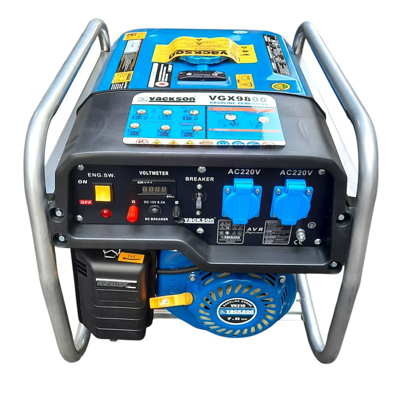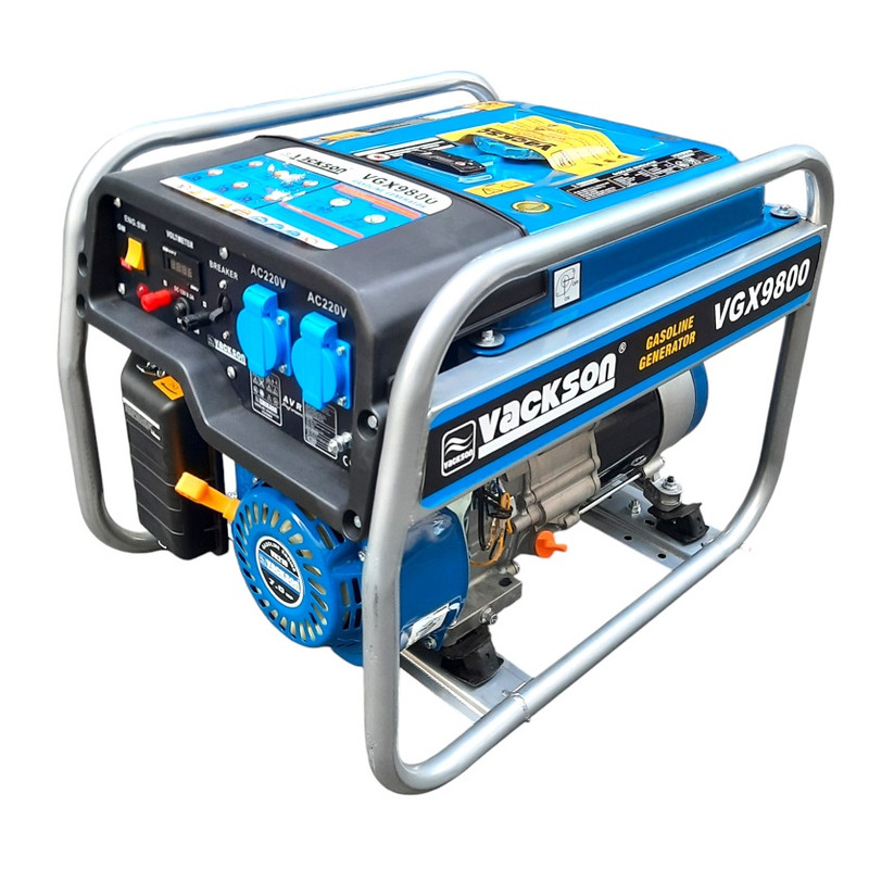 موتوربرق واکسون3500 وات مدل VGX9800 یکی از موتور برق های قدرتمندی است که شرکت «واکسون» تولید میکند. قدرت موتور 7 اسب که توانایی تولید 3500 وات را دارد. استفاده از سیم پیچ مس 100% و مجهز به تکنولوژی (AVR) میباشد.این ژنراتور برق تحتعنوان مدل «VACKSON VGX9800» عرضه شده است. این موتور برق انرژی موردنیاز خود را از طریق احتراق بنزین تامین میکند. مخزن سوخت بنزین این موتور برق حجمی برابر با 15 لیتر دارد. موتوری که از این سوخت انرژی الکتریکی تولید میکند، از نوع چهارزمانه است و قدرتی معادل 7 اسب بخار دارد. ظرفیت این موتور 210 سیسی است. این موتور تکسیلندری به کمک جریان هوا خنک میشود و صدای 96 دسیبلی تولید میکند. با کمک موتوربرق واکسون3500 وات مدل VGX9800 میتوانید برق AC و DC موردنیاز دستگاههای برقی خود را تامین کنید. سیم پیچی موتور برق های واکسون 100% از مس میباشد . توان این ژنراتور 3500 وات است و از طریق دو پریز درپوشدار برق AC را در اختیار کاربر قرار میدهد. این موتور برق ولتاژی برابر با 220 ولت دارد. همچنین برق DC خروجی نیز با ولتاژی برابر 12 ولت از شدتجریانی 8.3 آمپری برخوردار است. موتوربرق واکسون3500 وات مدل VGX9800 وزن مناسبی دارد که به راحتی قابل جا به جای است. موتور برق واکسون بدلیل استفاده از engine هایی که سیلندر آن ها از آلیاژ آلمینیوم و کربن سخت است و همچنین رینگ های با آلیاژ کربن نیترا-چدن خاکستری، کمپرس خیلی بالایی در موتور ایجاد شده که موجب میگردد قدرت اسمی موتور بالا رود و همچنین در قسمت ژنراتور ، استفاده از سیم پیچ 100% مس و به کار بردن تکنولوژی تثبیت ولتاژ و آمپر (AVR) جهت ثابت کردن خروجی برق که این قابلیت، این امکان را در این موتورها فراهم مینماید که بتوان در هر نوع دستگاهی اعم از مکانیکی و الکترونیکی فوق حساس نیز استفاده گردد، مانند (کولر ابی،یخچال،فریزر،تلویزیون،لپ تاپ و ....).